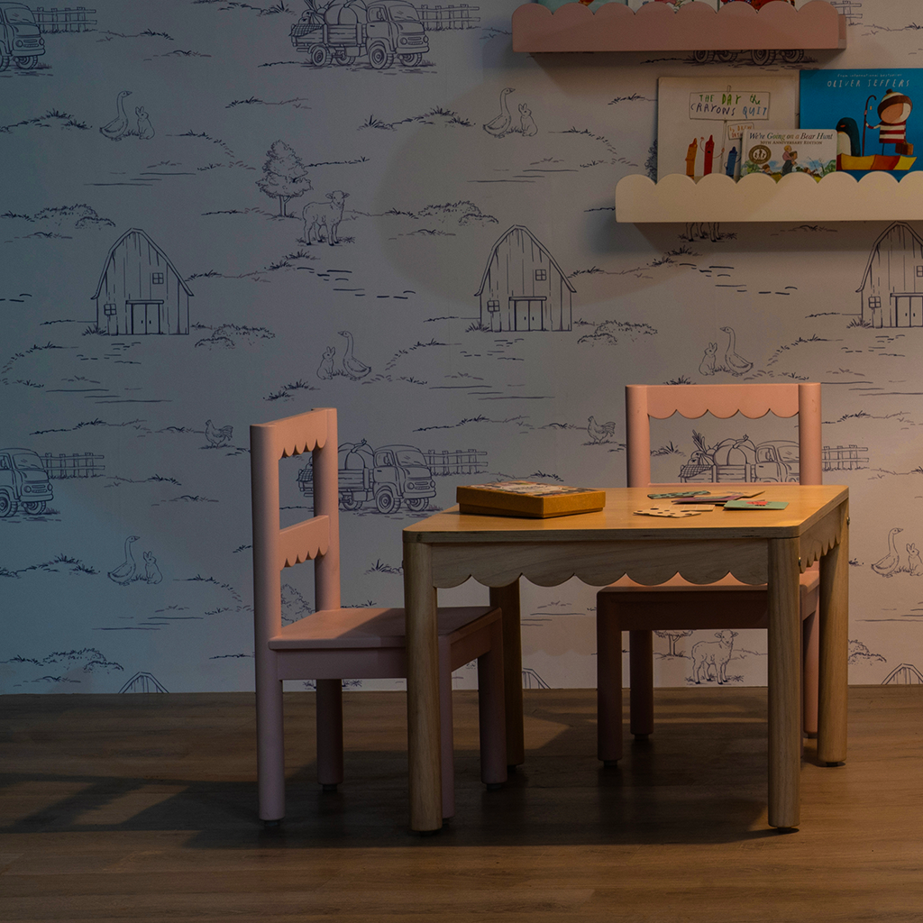 Rounded edges, playful curves, and a softly scalloped apron — Pippa is a sweet little table with big presence. Scaled just right for toddlers and early learners.